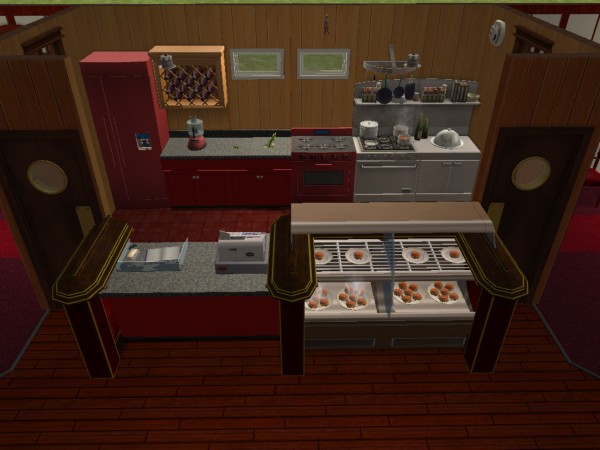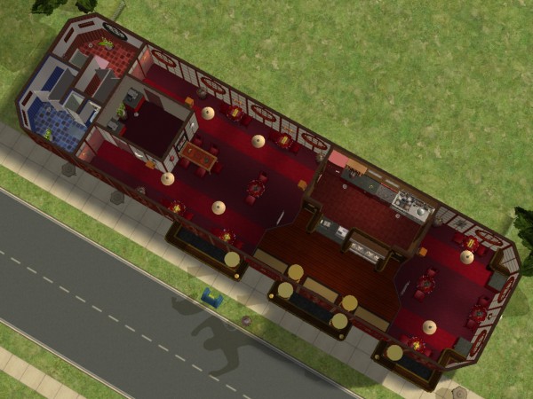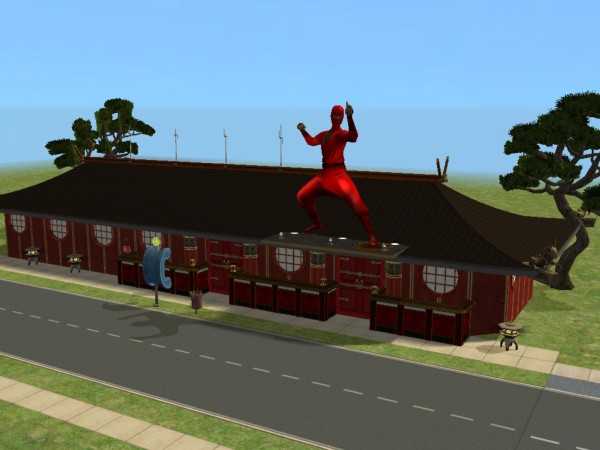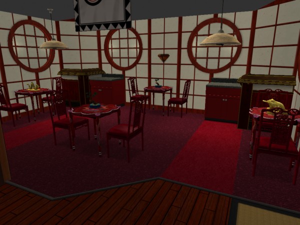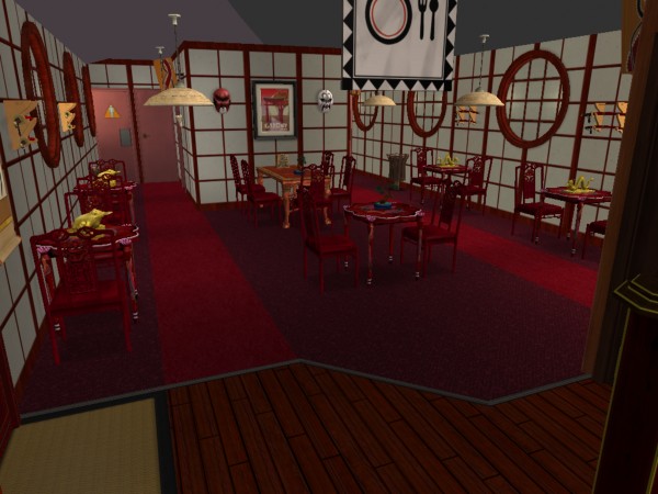 Ninja Burger is a conversion of Chili Witch! from a Chili-Oriented Fast Food Owned Community Lot into a Ninja-themed Burger-Oriented Fast Food Owned Community lot. Designed to be run as an owned community lot with burger platters for sale, it features about ten tables, a small kitchen/sales area, two bathrooms and a small employee break room.